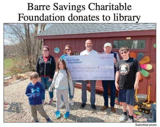 B A R R E GAZETTE, Barre MA – The Barre Savings Charitable Foundation presented a $5,000 check to the Fobes Memorial Library in Oakham for programs like summer reading and various activities. Paul Cranston, President of the Barre Savings Charitable Foundation and former state Senator Stephen Brewer presented the check. In seven years the Foundation has donated $750,000 to various communities in the region.